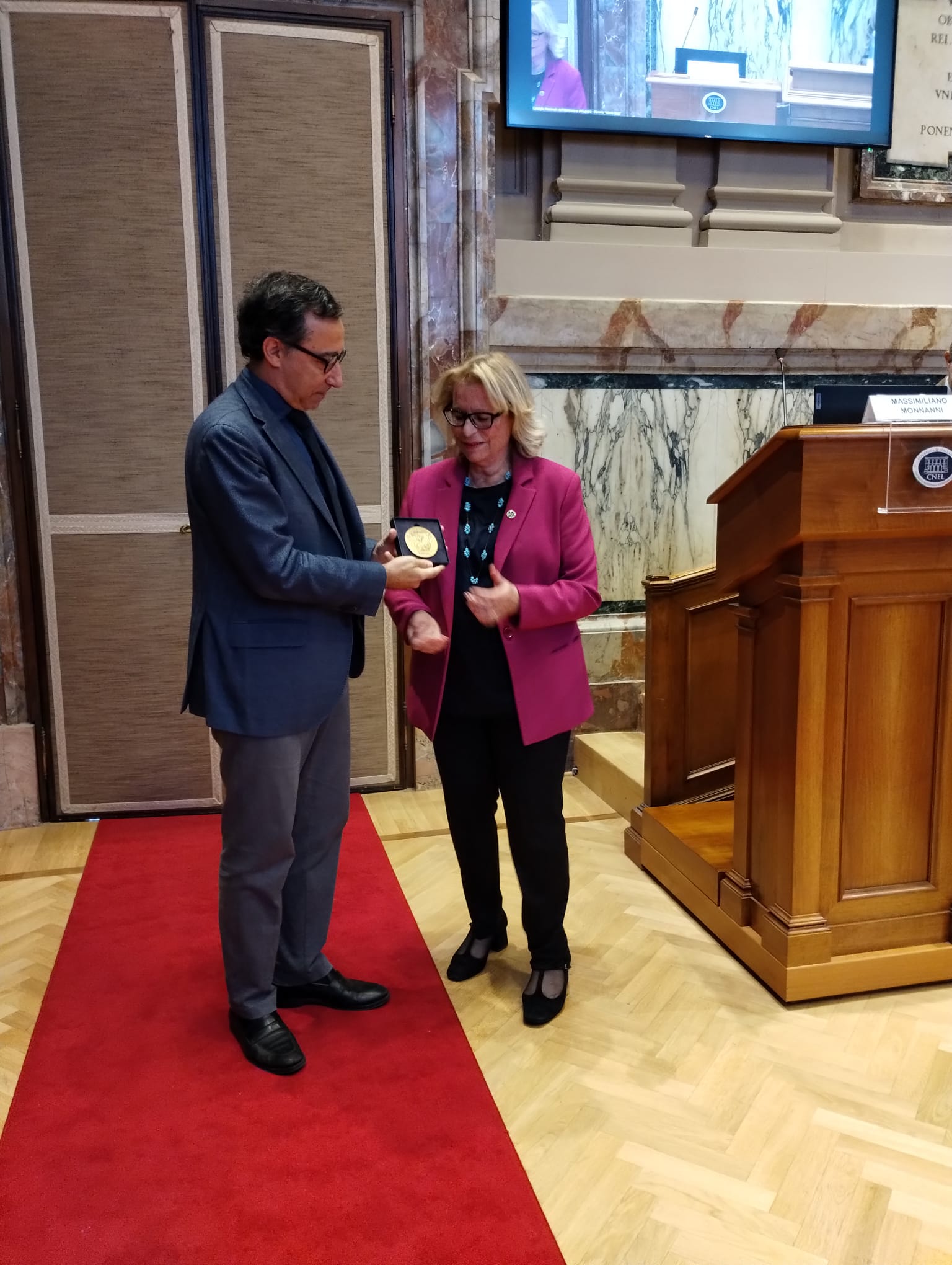 Nel corso della cerimonia, il Segretario generale Monanni ha consegnato la medaglia celebrativa ufficiale, coniata dalla Zecca dello Stato e acquistata dello stesso CNEL, destinando il ricavato a sostenere il processo di pace in Ucraina. Un gesto simbolico che ha unito il ricordo di una lunga storia sindacale all’impegno concreto per la solidarietà e la pace internazionale.